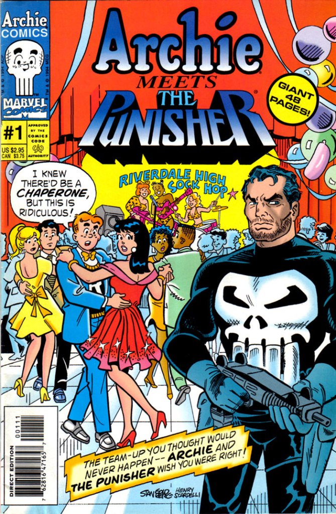 If you are seriously planning to buy an existing hard copy of The Punisher Meets Archie #1 (1994), be aware that as of this writing, MileHighComics.com shows that the near-mint copy of the regular edition costs $53 while the near-mint copies of the deluxe newsstand edition and the direct edition cost $105 and $70 respectively.