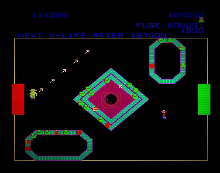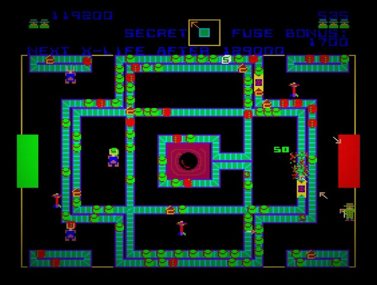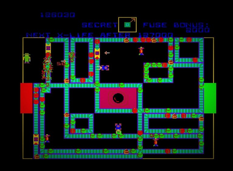 When it comes to the enjoyment and overall value of Cloak & Dagger, I can say that it is indeed more challenging and more chaotic when compared to the more notable twin stick games Robotron 2084 and Smash T.V. For one thing, each level has different layouts complete with obstacles or hazards plus enemies that will certainly challenge players. Many levels have conveyor belts moving unarmed explosives, armed explosives (which you must avoid touching because you will die upon direct contact) and items around which form obstacles when it comes to shooting robot guards on the other side (note: you can use the obstacles defensively when the robot guards fire at you).