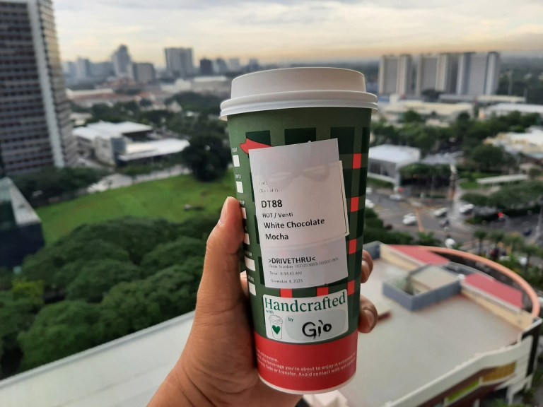 On November 4, I finally made my first order of coffee by means of drive-thru. Even though there were two vehicles ahead of me, the drive-thru experience at Starbucks near Filinvest City Central Park was pretty smooth lasting less than ten minutes. I had a hot white chocolate mocha.