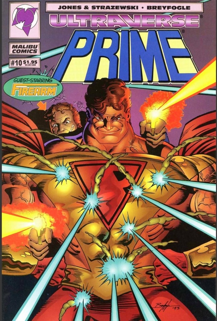 Within the Ultraverse is a hero that was notably absent in the many UV comic books I reviewed, and Malibu Comics even published a regular series of the character. That character is Firearm who goes by the civilian identity as Alec Swan. Swan, who has no super powers, is a British private investigator who was formerly a member of an elite cover bureau in his home country. He has been working as a PI in California and he has encountered several super-powered people in the Ultraverse. In this comic book review, he gets involved with Prime.