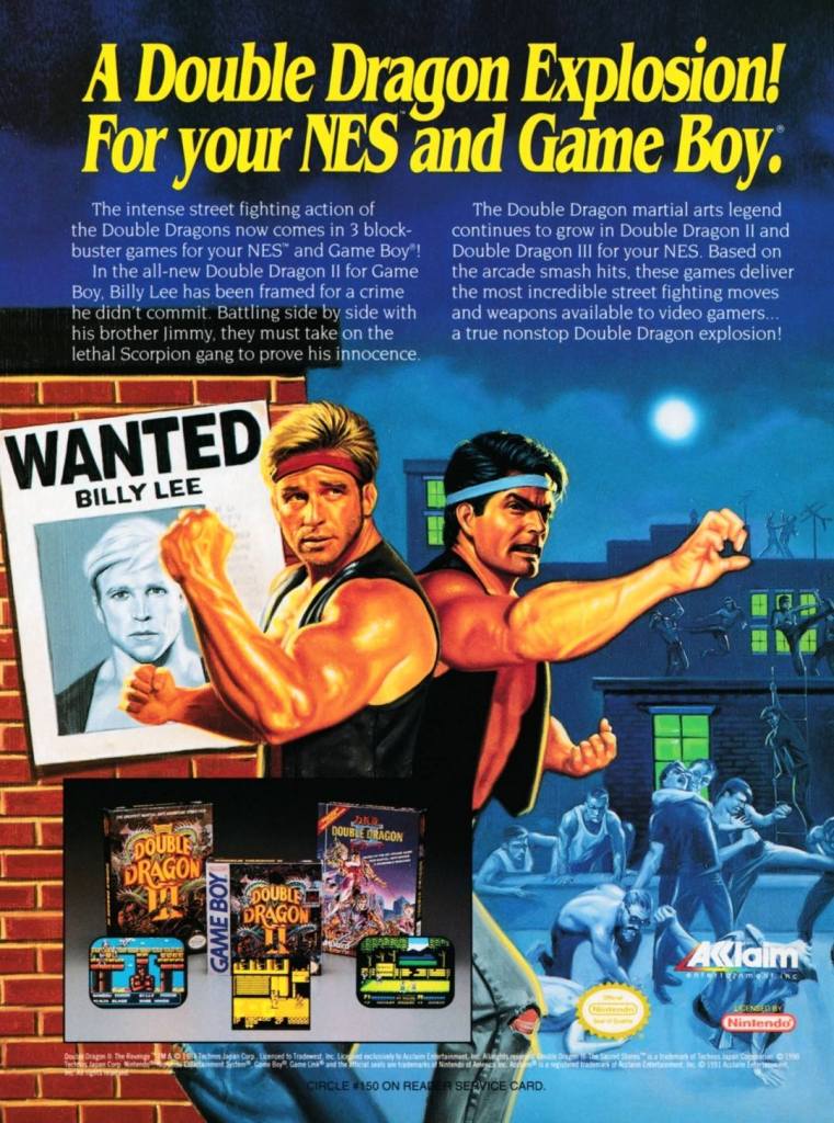 When it comes to the console and handheld presence of the Double Dragon games franchise, it was on Nintendo hardware – specifically the NES and the Game Boy – where gamers and the fans could find them. Acclaim Entertainment knew how popular Double Dragon games were with Nintendo gamers and they aggressively marketed Double Dragon III: The Sacred Stones and Double Dragon II with a single-page print ad that had great looking painted artwork. Very clearly, this early 1990s ad was made to connect strongly with Double Dragon fans and its presentation still looks very solid even with today’s standards.