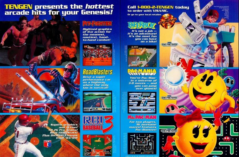 Back in the 1980s, Atari formed the company Tengen to not only develop games but also publish game for computers and game consoles. During that decade, Tengen published games on the NES but they had trouble working within the strict licensing terms of Nintendo. The two companies would later get into court battles over a series of events within the gaming business. Eventually, Tengen started doing business with Sega and published games on the Genesis console. As part of their aggressive publishing of games on Sega’s console, Tengen came up with this 2-page print ad promoting six different games emphasizing that the fun arcade experiences are coming to gamers’ homes.