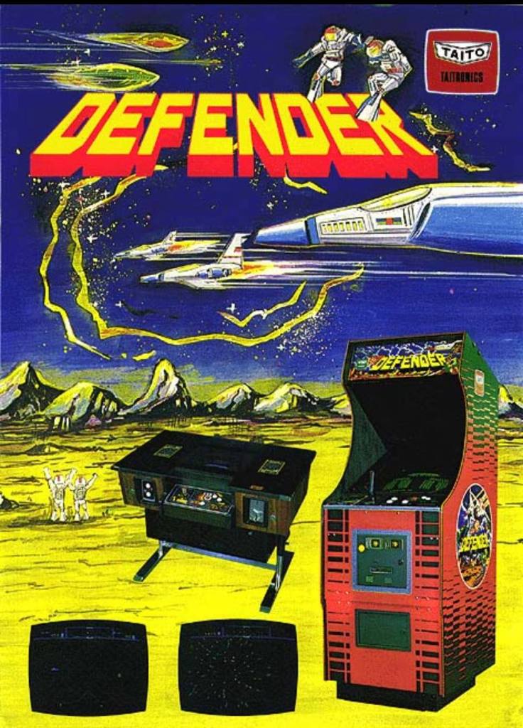 Defender is one of my favorites among the many games of Midway. In recent times, I’ve been playing the arcade version of Defender on my Xbox Series X using the Midway Arcade Origins digital copy I purchased online. As Defender became a massive hit in America, it was released in Japanese arcades with Taito handling the distribution. The arcade flyer Taito came up with used hand-drawn art for the background on the front along with pictures of the arcade cabinet and the arcade cocktail table versions of the game. While the rear of the flyer looks very simplistic, the front remains attractive to look at.