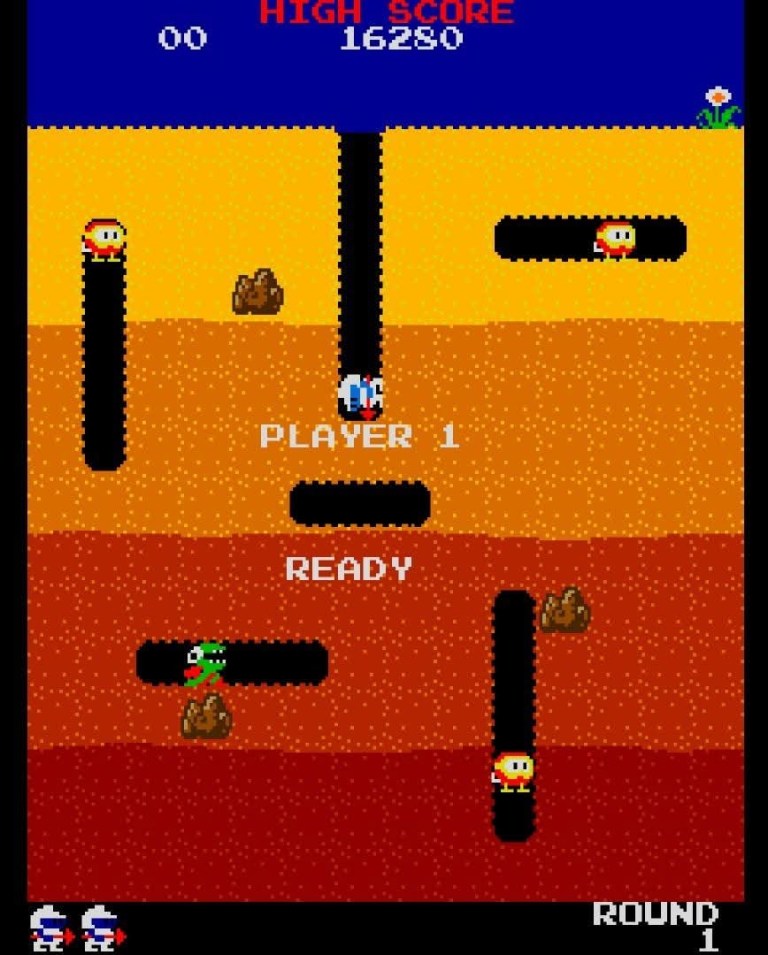 The first level of Dig Dug.