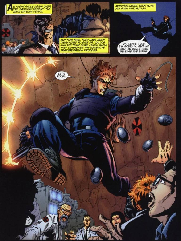The brave and dynamic Leon Kennedy springs into action against Umbrella.