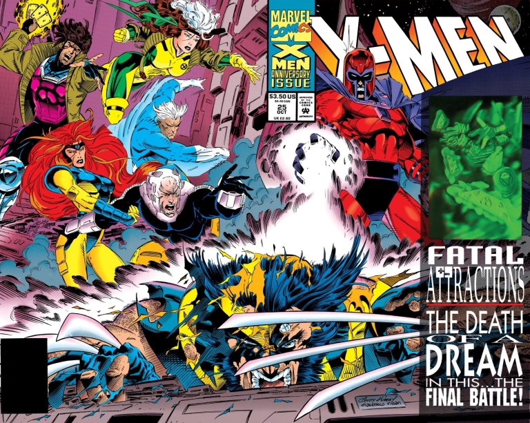 Welcome back, superhero enthusiasts, comic collectors, 1990s culture enthusiasts and fans of the X-Men! We go back to the year 1993 when the 30th anniversary of the X-Men was celebrated with the 6-part Fatal Attractions storyline. Already I reviewed Uncanny X-Men #304 (Part 3) which was not worthy of the X-Men’s 30th anniversary celebration. X-Men #25 (Part 4) meanwhile was not only great but also shocking and had a years-long impact on X-Men comics.