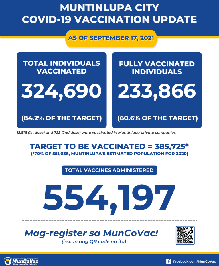 Muntinlupa residents may register for vaccination at vaccine.muntinlupacity.gov.ph/muncovac.