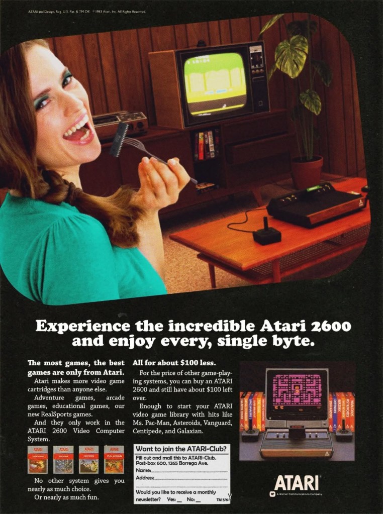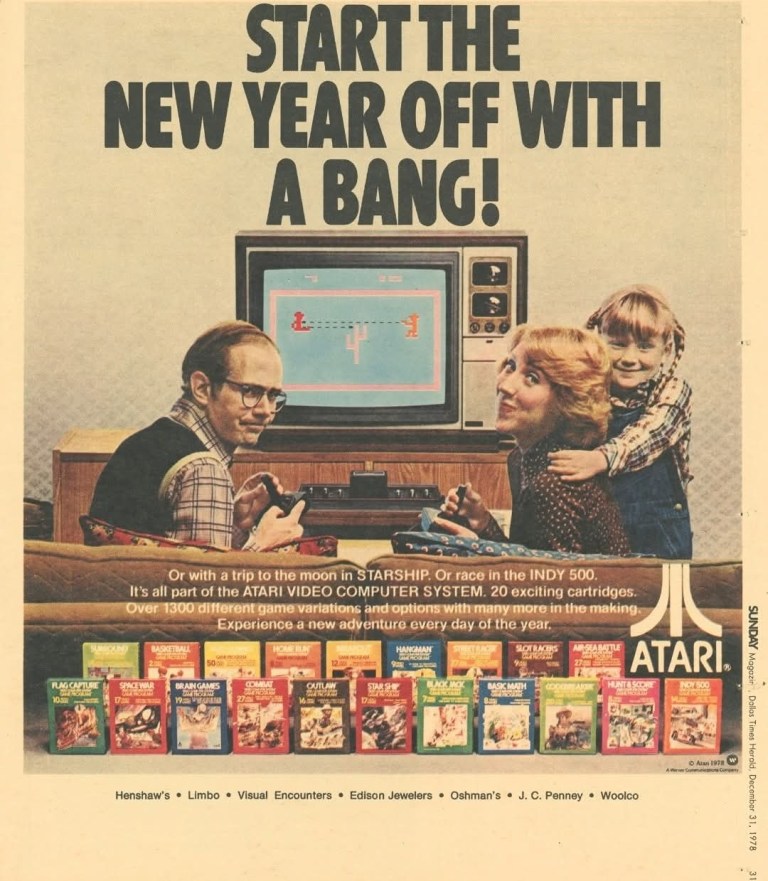 When the Atari 2600 was first launched in 1977, it was officially called the Atari Video Computer System (Atari VCS). The Atari company really aimed high to sell a lot of consoles to as many households as possible and they came up with a print ad like this one from 1978. While the Atari 2600 and its games were displayed, the image of a father, mother and daughter showed that the company not only targeted American families but also want to change home entertainment to be more interactive. This old ad is truly an inspired piece of work.