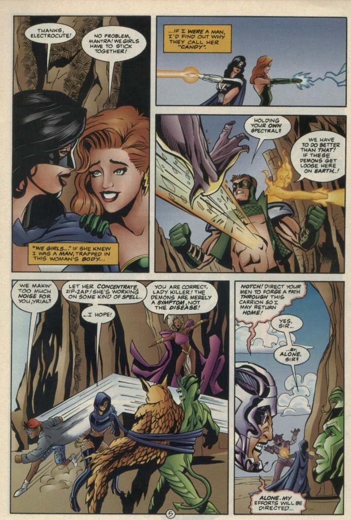 Meanwhile, Spartan and Voodoo find themselves in deep trouble as a horde of Daemonites persistently attack them. Already heavily damaged, Spartan keeps on using his energy blasts to hold the monsters off. Voodoo on the other hand is too weak and could not concentrate to help her teammate.
