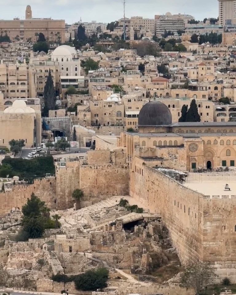 In the foreground are the Southern Steps and the Southern Wall of the Temple Mount. In the background is more of Jerusalem. (source – screenshot taken from the Instagram video of Hananya Naftali)
