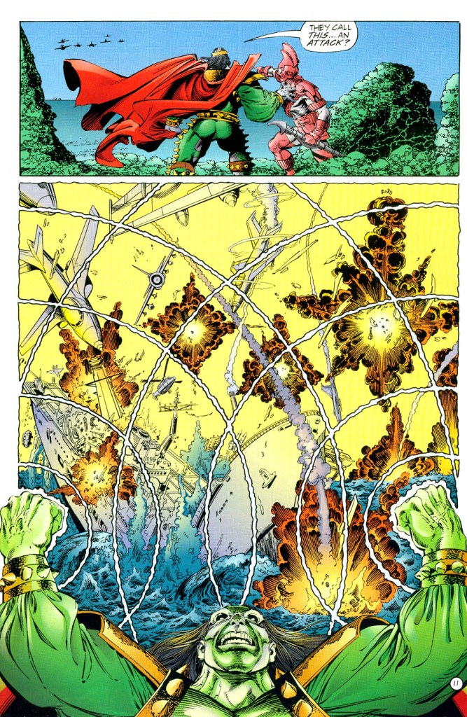 After going through the engaging build-up of UltraForce #2, it is only natural to expect a pay-off filled with spectacle and some intrigue to happen in the following issue. Specifically, within the Ultraverse, Prime, Hardcase, Prototype and the other members of UltraForce made their case already with US President Bill Clinton and other top officials in relation to the growing threat from Atalon and his army from deep underground. Also at stake was the global perception towards the world’s people with superpowers publicly referred to as the Ultras.