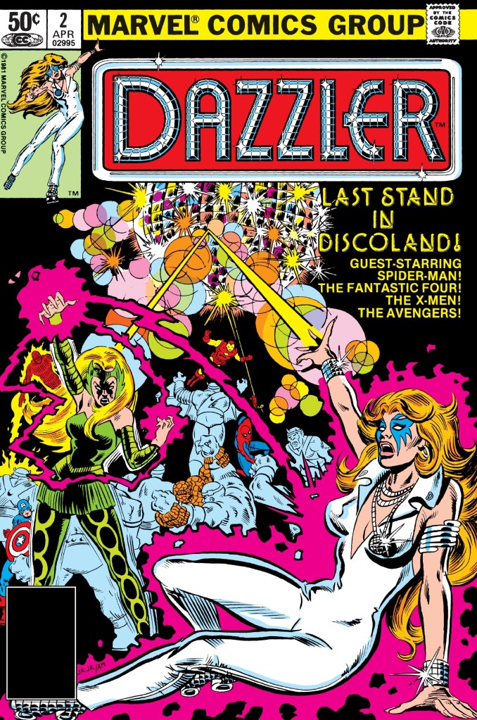 Dazzler #2 (1981) is an example about a creative team’s lack of confidence on crafting a decent story to develop a new superhero and ultimately resorting to fill it with a mix of other superheroes involved which itself symbolizes desperation. This comic book is not really a Dazzler story but an all-star showcase with Dazzler becoming a minor character in her own monthly series.