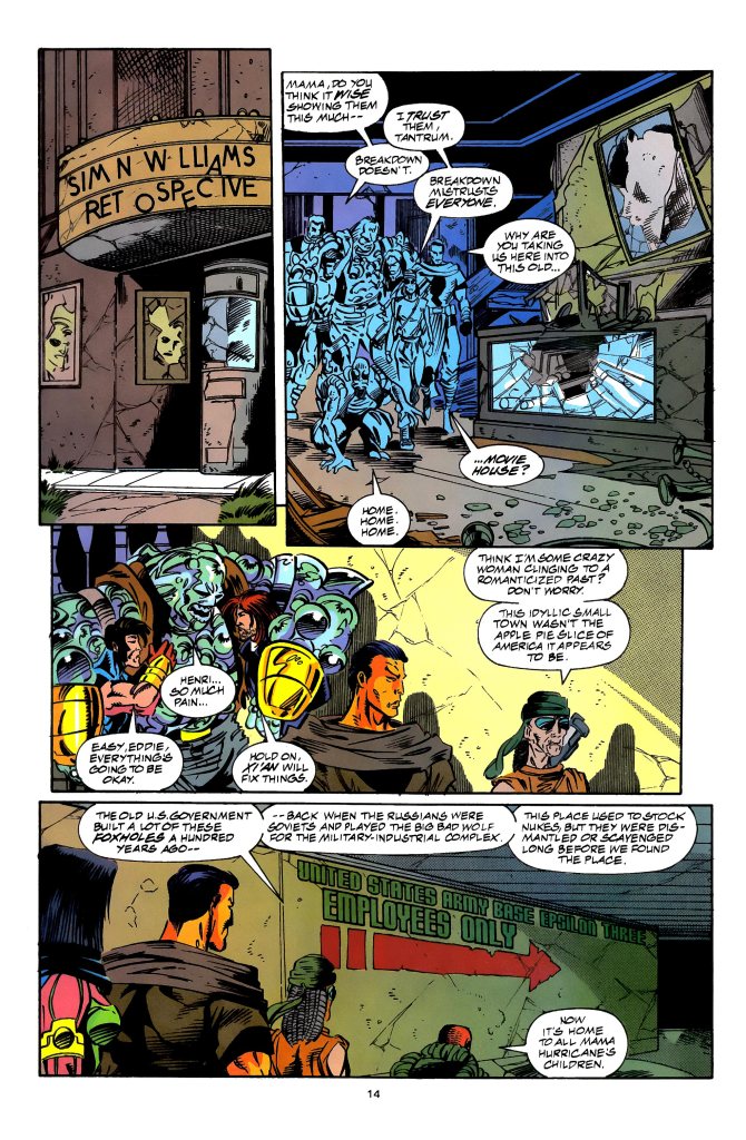 Adding more depth to the surprise change of focus, the Freakshow here developed quite a lot as the group visits a new place and meets with a new group of people led by someone Mama Hurricane (head of the Freakshow) knew. As the development of the Freakshow went on, so did the creative team’s continued emphasis of the lore of the 2099 universe in the western region of the United States.