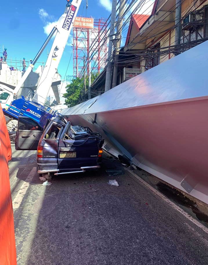According to a PTV News report, a steel girder from the Skyway Extension Project fell down at the East Service Road in Barangay Cupang, Muntinlupa City, which was caused by the crane (of project contractor EEI Corporation) that fell on its side as it moved to its next position. According to a Manila Bulletin report, the steel girder fell on several vehicles causing the death of motorcyclist Edison Visaga Paquibot and injuring others.