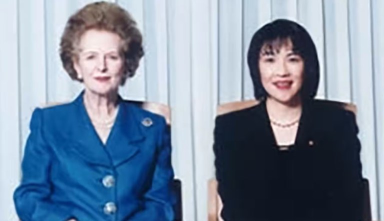 A younger Takaichi with former British Prime Minister and conservative icon Margaret Thatcher many years ago. (photo source – Nikkei Asia)