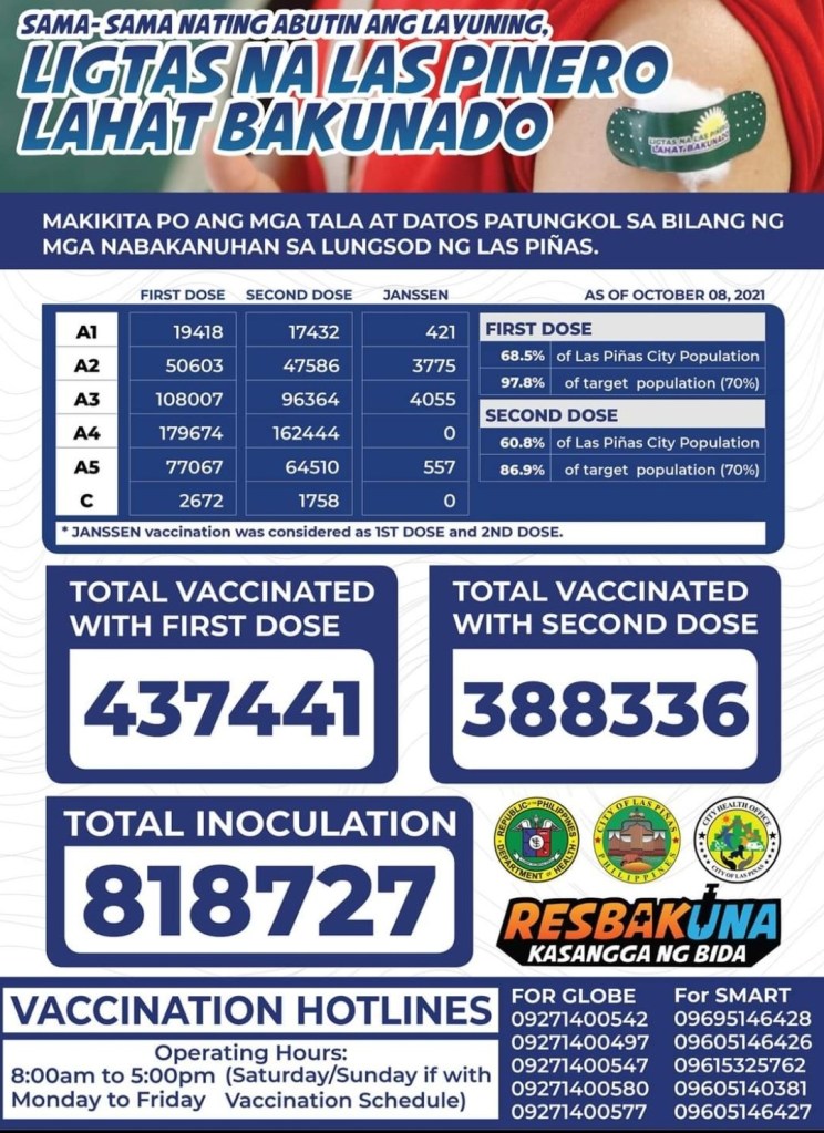Meanwhile, the City Government is already handling the online registration process for COVID-19 vaccination for local minors (aged 12 to 17) which can be done at http://laspinascityonline.laspinascity.gov.ph/eCVRS/