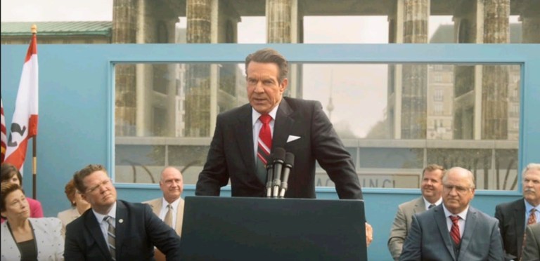 In this movie (released on August 30, 2024 in cinemas), Dennis Quaid played the iconic Ronald Reagan. The supporting cast includes Penelope Ann Miller as Nancy Reagan (the First Lady), Jon Voight as Viktor Petrovich, Robert Davi as Leonid Brezhnev, and Kevin Sorbo as Rev. Ben Cleaver.