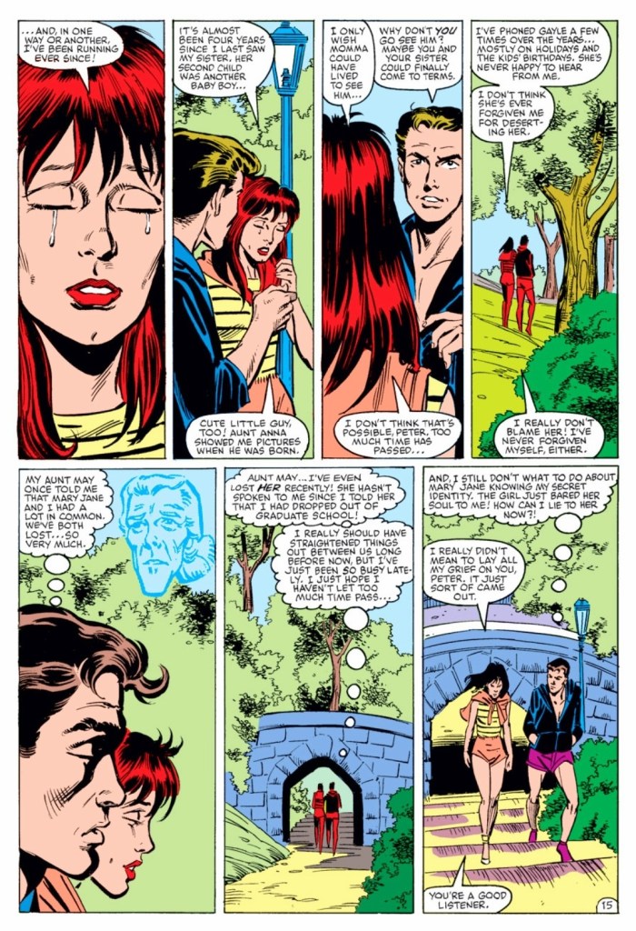 To get straight to the point, this continued rematch between Spider-Man and the Vulture is so outlandish (backed with the science fiction approach to life energy and the so-called fountain of youth), it almost felt like it was a story crafted for the What If series of comic books. In fact, the sudden aging of Peter Parker into an actually elderly man getting into close calls with two notable family members made this tale even more suitable for the What If series (note: What If #4 of 1989 had a severely aged Peter Parker in it).