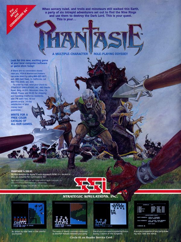 Released by Strategic Simulations in the mid-1980s, Phantasie was a fantasy role-playing game that became a huge commercial success paving the way for not only ports on other computer systems of the time but also sequels later. The ad they came up with for the North American market had strong fantasy vibes and the screenshots gave readers the impression that it looked playable or user friendly. For the Japanese market, Phantasie was ported to the MSX system and they came up with an ad using radically different art work that had a horror vibe.