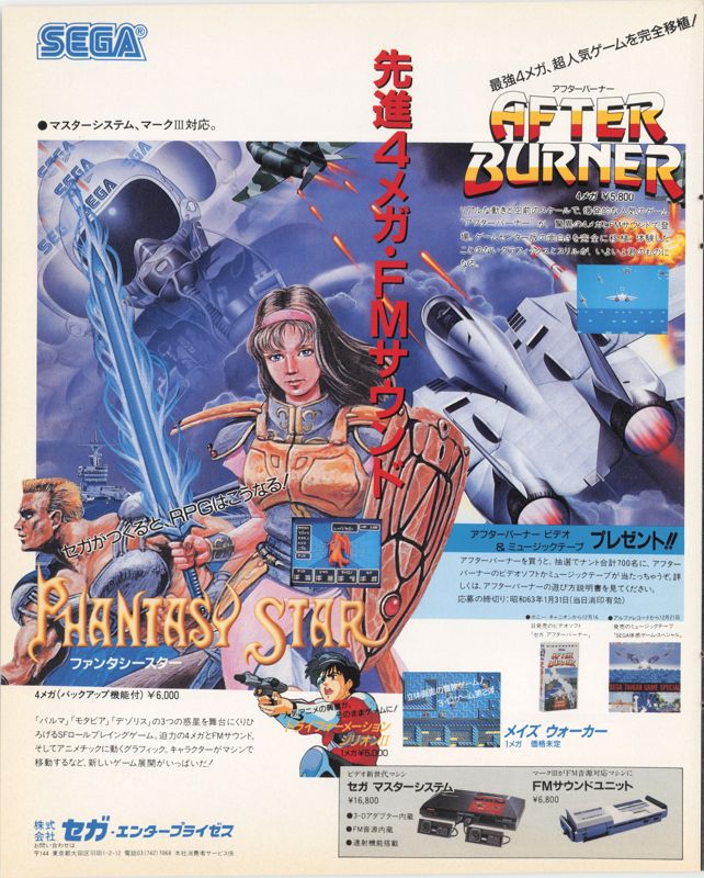 In the 1980s, role-playing games started gaining popularity with Japanese console gamers and there were game developers who were inspired by established RPGs from the West. Enix released two Dragon Quest games and each of them sold a lot of copies on Nintendo’s Family Computer (Famicom). At the time, Sega already had the Master System (called the SG-1000 and its variants with revisions) in the console market and they were way behind Nintendo on hardware sales. Knowing there is a market for console RPGs, Sega went on to make their exclusive RPG Phantasy Star. In 1987, a print ad was released showing Phantasy Star sharing the spotlight with Sega’s blockbuster game After Burner in the background. While the ad felt a bit disorienting to see, the game achieved much-needed success for Sega which in turn brought the game to the Master System in America in 1988. The game sold more and eventually led to sequels in the years that followed.