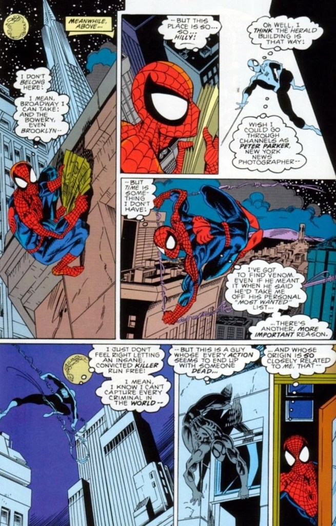 Along the way, the iconic Spider-Man got a rather huge chunk of the spotlight in this comic book making him the 2nd lead next to Venom. I remember back in 1993 when there were Venom fans who complained about Spider-Man literally stealing the thunder away from his greatest enemy while there were a few Spider-Man fans who defended the icon’s guest participation in the story as he has always been linked with Venom’s origin. Considering the lack of depth in the plot, I can say Spider-Man appearance her served as a somewhat helpful filler.