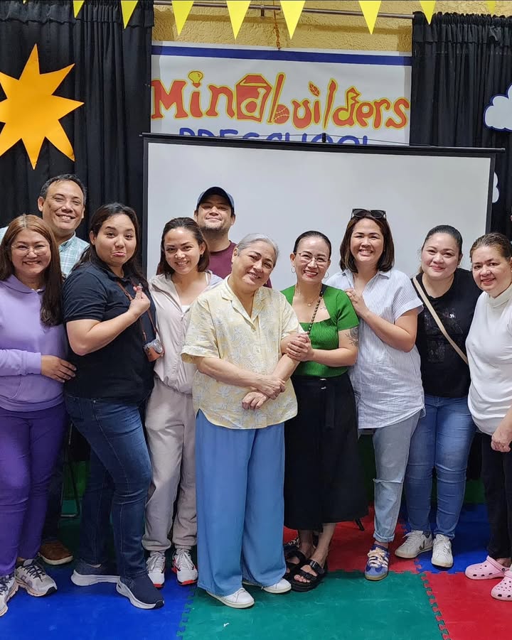 Philippines film and TV living legend Gina Alajar poses with the teachers and parents of Mindbuilders Preschool. At leftmost is directress Marah Estuesta. (Photo credit: Richard Estuesta)
