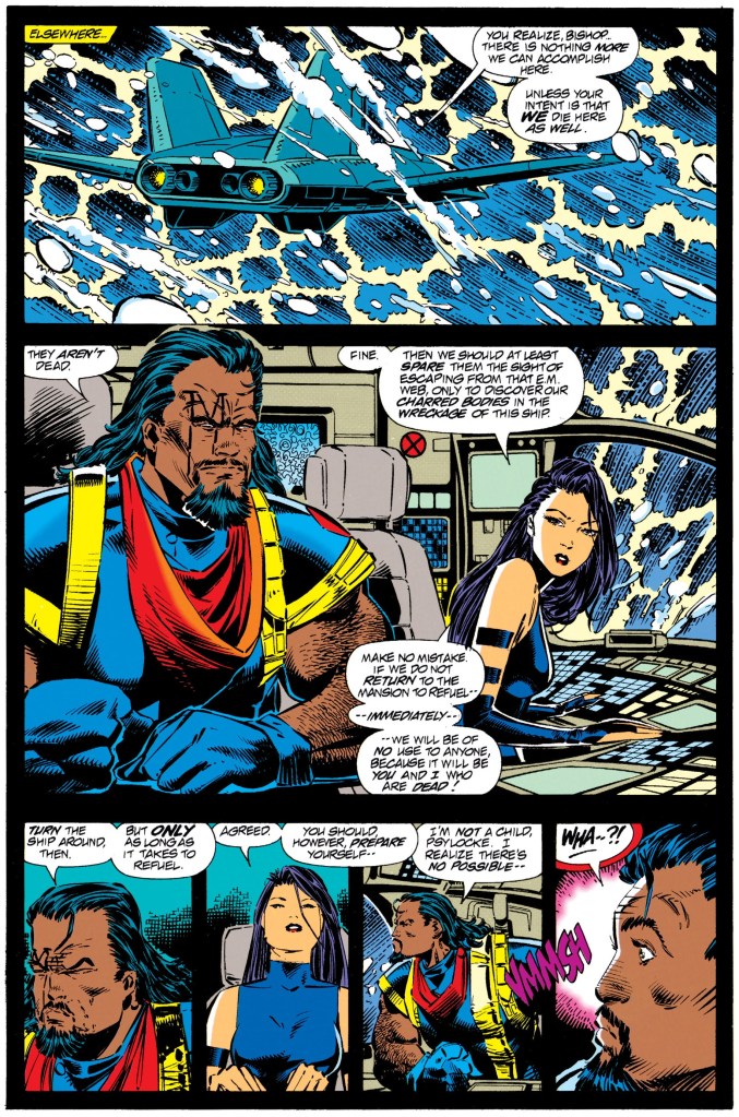 With regards to the writing, John Byrne’s intricate touch on the dialog was clearly missing but Scott Lobdell did a fine job taking over. While Whilce Portacio was credited as illustrator, there were a few pages that looked like they were drawn by someone else. The same also happened with regards to the inking in different parts of the comic book…Art Thibert’s inking has a fine touch and there were some images that had aggressive and thicker inking (it has to be the work of someone uncredited).