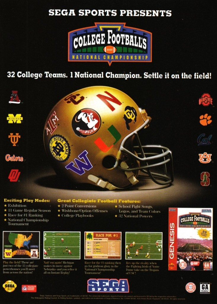 This is another one of those video game ads I saw while reading comic books in the 1990s. College Football’s National Championship was a Sega Genesis-exclusive American football video game published by Sega (with the Sega Sports brand) to capitalize on gamers who want college football to play with at home. This print ad has a nice visual presentation of the college teams’ logos, screenshots and details of what gamers could expect when they buy and play the game. College Football’s National Championship received mostly positive reviews and it must have sold well because Sega went on to release a sequel to this game.