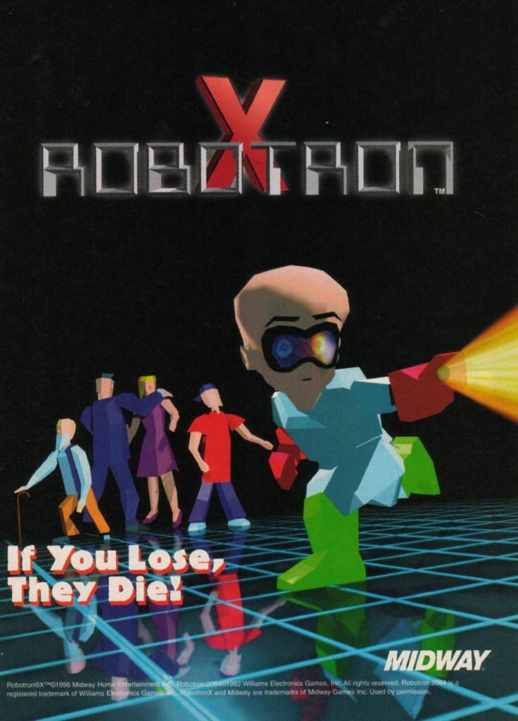 Having played the classic game Robotron: 2084 on PC back in the 1980s, I was very surprised to see this print ad in 1996 promoting a brand new Robotron game for PlayStation as well as Windows PC. For the newcomers reading this, Robotron: 2084 was a classic which heavily influenced game designers who went on make other fan-favorite games like Smash TV and Llamatron. What makes Robotron X notable apart from being an official follow-up to the classic game was the fact that it was made at a time when game developers did their stuff to modernize gaming with 3D polygons for visuals while trying to come up with gameplay inspired by the classics. While Robotron X did not make a major impact on gaming, the classic Robotron: 2084 went on to be released in several multi-platform compilations such as Williams Arcade’s Greatest Hits, Midway’s Greatest Arcade Hits, and Midway Arcade Treasures.