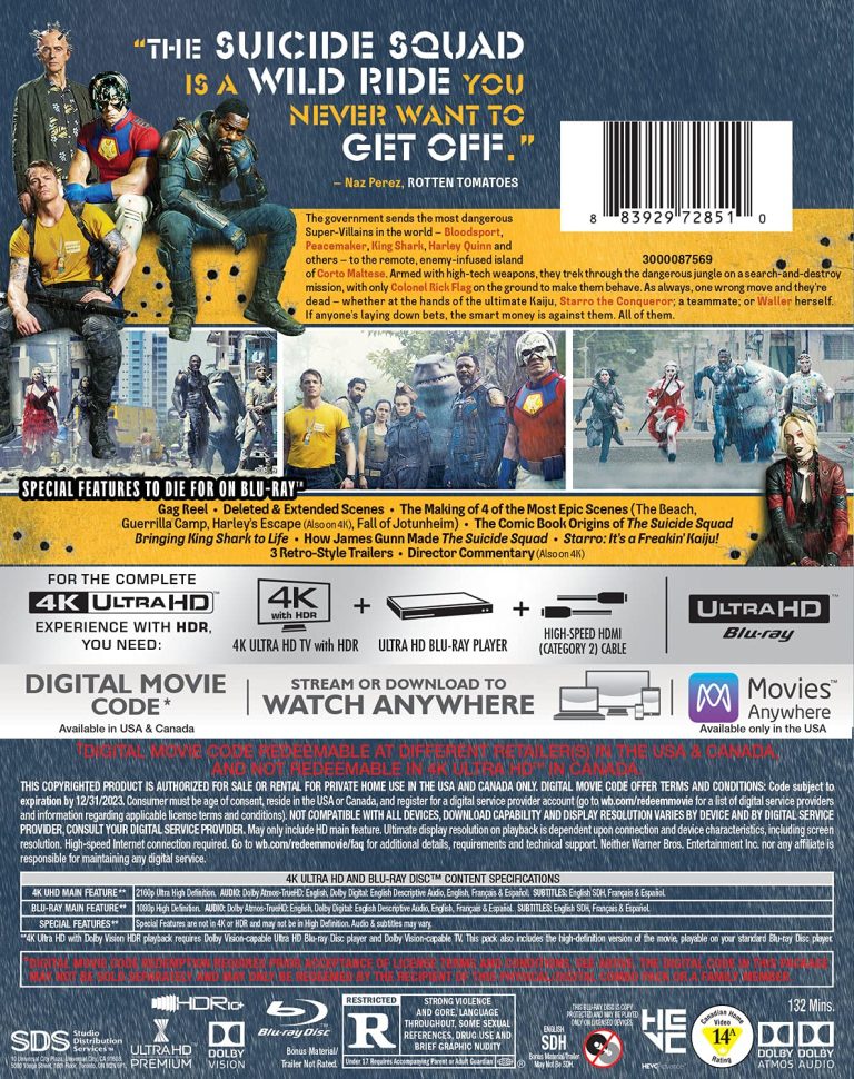 The back of The Suicide Squad 4K Blu-ray combo.