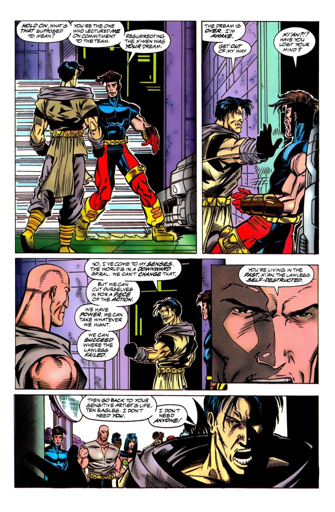 The story begins shortly after the fall of Zhao with Xi’an looking over his inactive body. Xi’an wants Zhao’s body left outdoors for coyotes to feed on but Shakti tells him that the defeated X-Men master is still conscious. The X-Men noticed something very different about Xi’an and to Krystalin, he has an edge to his voice that she never heard before. Victor tells them that their leader was once a ruthless man during their time together as members of the Lawless.