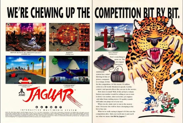 In the early 1990s, Atari made an aggressive move to compete in the arena of video game consoles which they used to dominate from the late 1970s until 1983. This time around, they came up with the Jaguar console which had some pretty advanced technologies for the time. As part of their North American marketing campaign, Atari unleashed an ad showing game screenshots on the first page and huge artwork of a jaguar coming after Sonic, Mario and Yoshi (mascots of Sega and Nintendo respectively) symbolizing that the Atari Jaguar had more power and better technology than the Genesis and the Super Nintendo Entertainment System (SNS). While it was engaging to look at early on, this print ad is now an embarrassment as the Jaguar console failed terribly. Lastly, the marketing of the Jaguar as a 64-bit machine was never real.