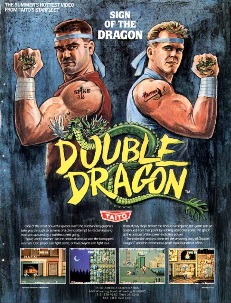 Released in 1987, Double Dragon became a huge hit in the arcades of Japan, America and Europe resulting in financial gains for developer Technōs Japan and publisher Taito. What I find intriguing was the fact that the Double Dragon arcade flyers for Japan and North America had drastically different art styles used to promote it. The Japanese flyer had art style that is more common with manga while the North American had artwork that seemed inspired by Hollywood action movies (as well as the rise of martial arts films in America during the 1980s). The American flyer even had the two characters identified as Hammer and Spike and they both looked American. This is a classic example of using different approaches to promote a game in each market.