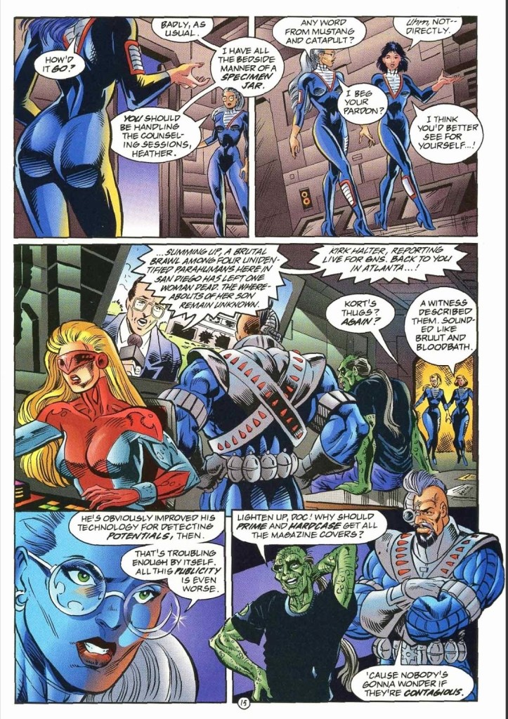 Inside the headquarters of Exiles. Ghoul’s mentioning of Prime and Hardcase seems to foreshadow his eventual part in UltraForce.