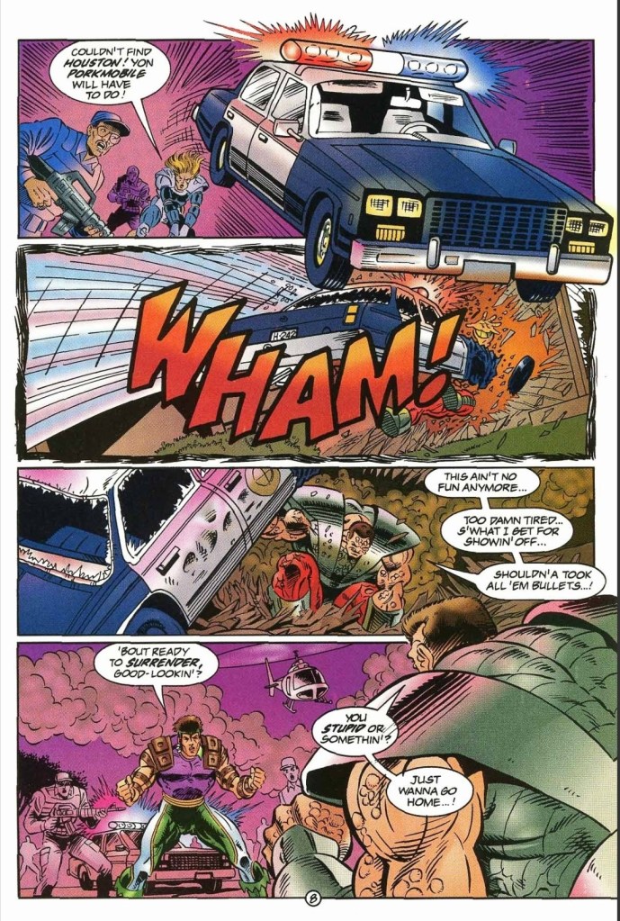Starting with the writing, I should mention that all the writers who were involved in plotting this comic book as well as the previous issue should be commended for their combined efforts on making the Break-Thru storyline happen complete with in-universe ramifications, developments and connections to almost all the monthly comic books via the Break-Thru tie-in issue (also check out Sludge #3, Freex #6, Solitaire #2 and Night Man #3). Clearly Break-Thru was planned to be a major turning point of the Ultraverse by involving and mixing most of the major characters together and have them struggle with tremendous obstacles they simply cannot ignore as the stakes were indeed too high.