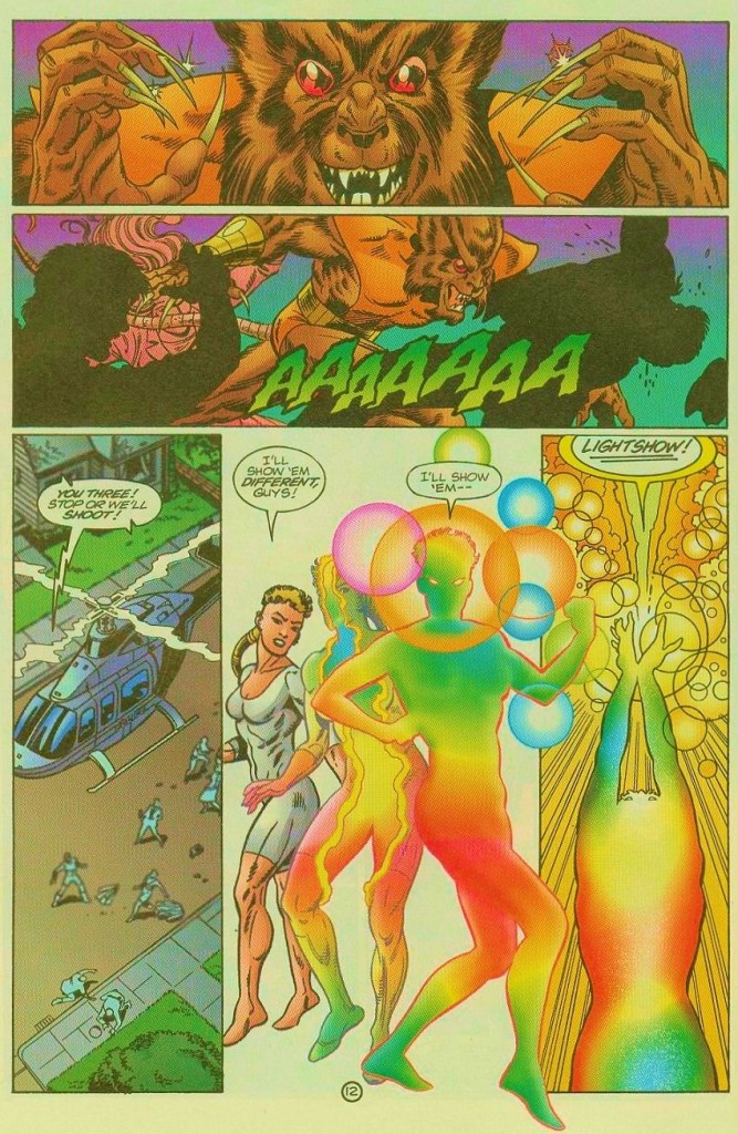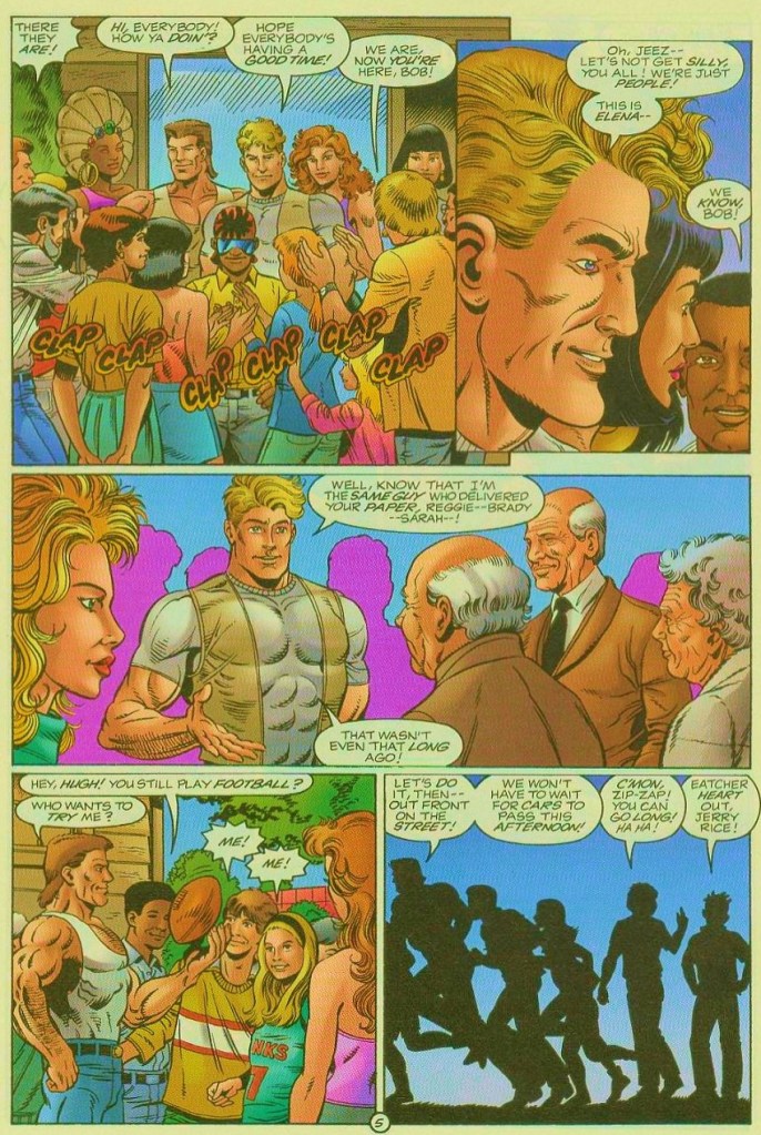 Given how hectic times were for The Strangers in the first four issues, this story is a welcome change of pace. The pacing was adjusted to give readers some much needed breathing space to help them focus on the characterization moments, to get to know each team member better and to realize what their place in the entire Ultraverse truly is. For one thing, it is nice to see Atom Bob with his folks and it is quite something to see Yrial finding herself somewhat lost and lonely in the middle of the city as she is unable to come back to her tribe on the floating island.