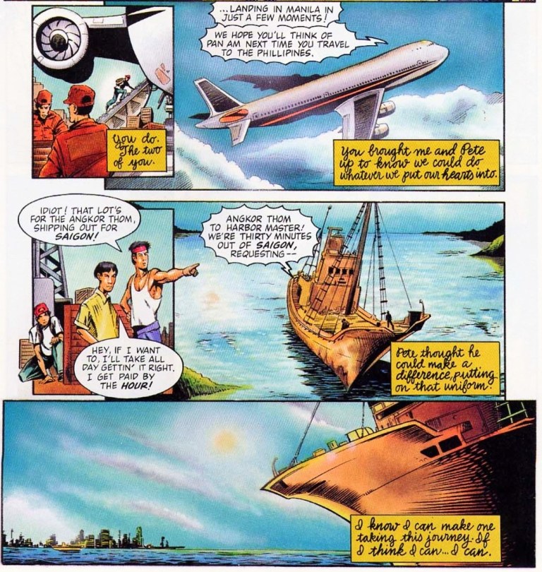 Incredibly, Charles travels from America to the Philippines by air, then to Vietnam by ship. How he got past security is beyond me.
