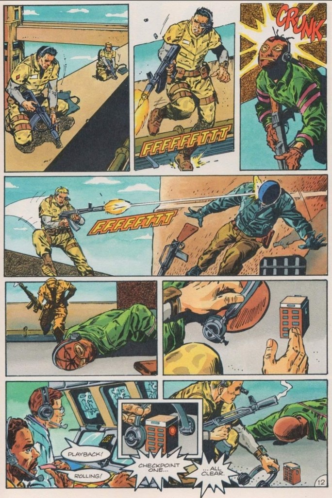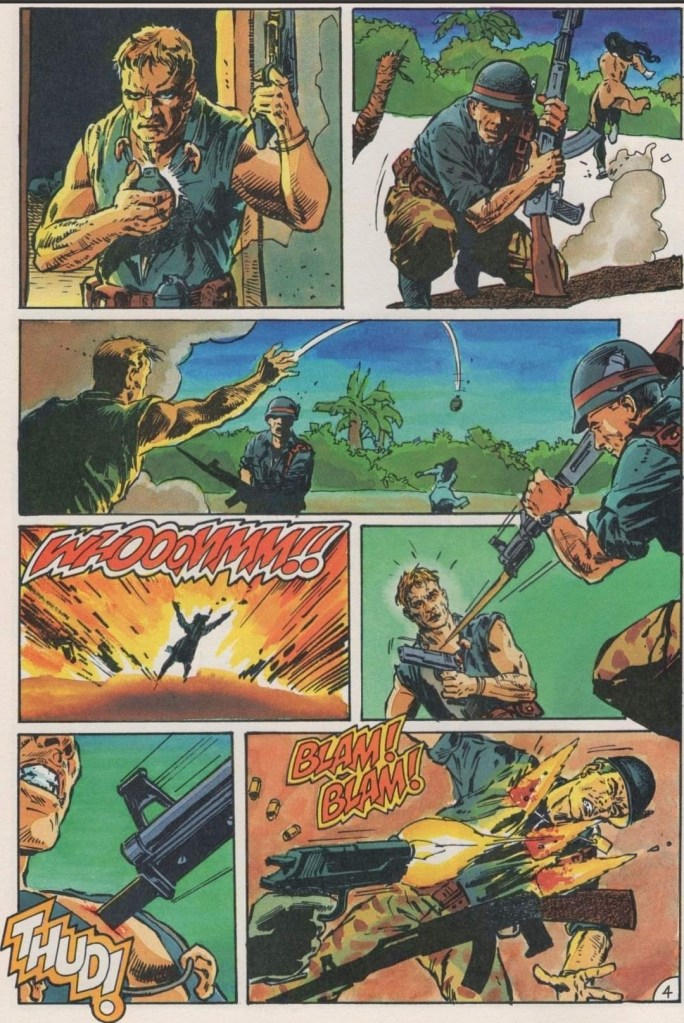 This early scene sets the tone of the entire comic book. As for the characters, Deveraux look nothing like Jean-Claude Van Damme and Sergeant Scott does not look like Dolph Lundgren (note: in other images of Scott shown later in the comic book, he looked a bit like the actor).