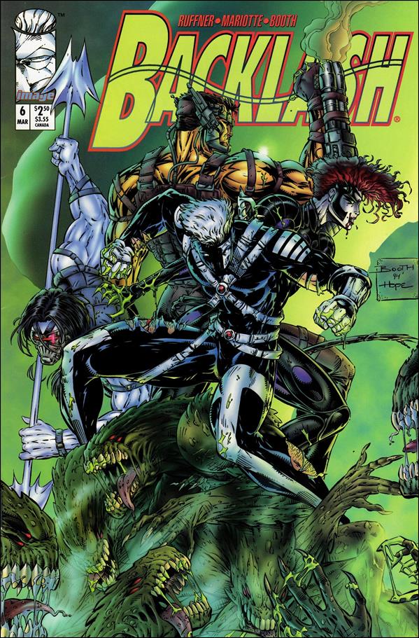 With those details laid down, here is a look back at Backlash #6, published in 1995 by Image Comics with a story written by Brett Booth, Jeff Mariotte and Sean Ruffner. Booth and Dan Norton were the illustrators.