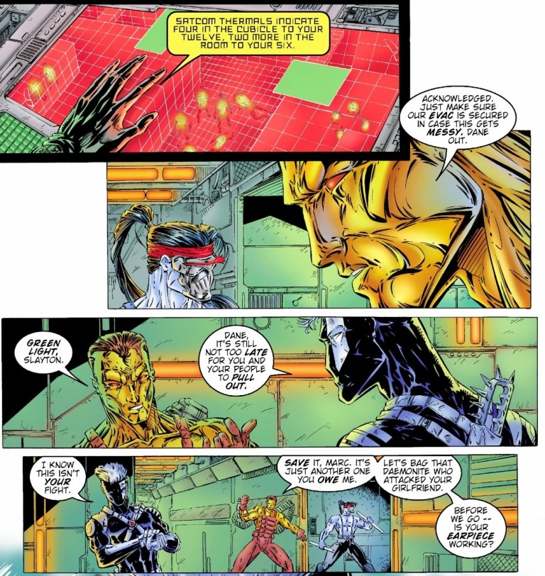 The story begins at Jacob Marlowe’s high-end place in Aspen, Colorado. In presence of Spartan, Grifter, Void, Zealot, Voodoo, Maul and Warblade, Marlowe tells them he has important matters to attend to as he, along with other heads of corporations, has been asked by the new government to run an energy commission. The said commission is part of the government’s plan to repair the damage that was done by the possessed US Vice President Dan Quayle.