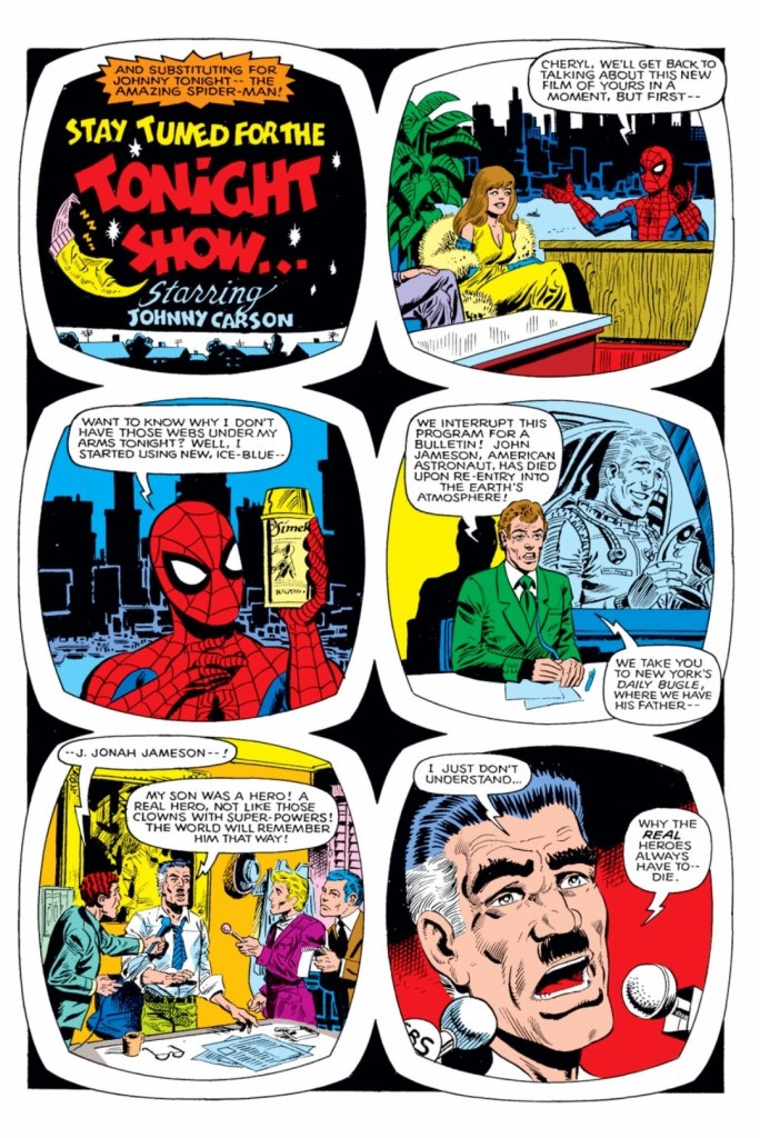 As Spider-Man makes waves on television as an entertainer and endorser, J. Jonah Jameson tells the media the difference between real heroes and the costumed ones with super powers.