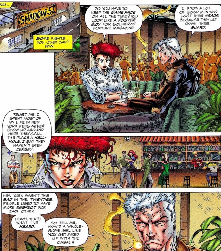 For one thing, the team really took their time to develop Backlash and Taboo some more right after the end of the first mission. Their talk with each other as civilians inside a New York City bar was nicely written and there were a few witty moments that I found enjoyable. Along the way, there was efficient expository dialogue that explains Taboo’s past connection with Pike and the Cabal. Backlash also shared some key details of himself which ultimately made him and Taboo have something in common.
