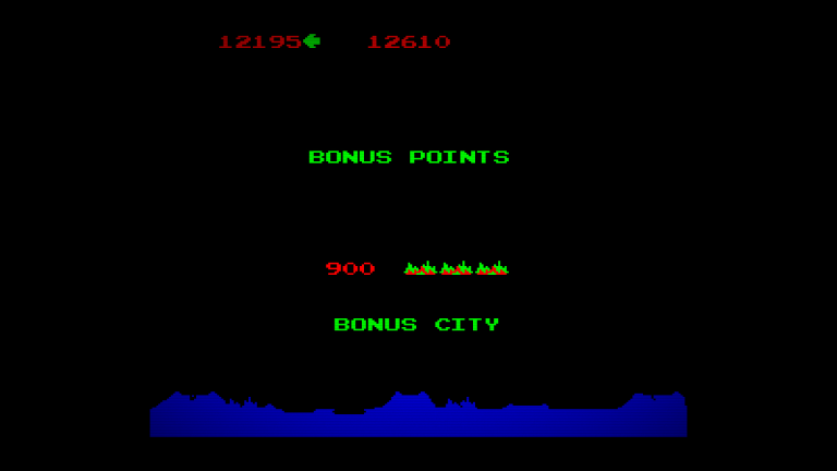 To proceed from one level to another, the player must have at least one city remaining intact. Once all the six cities have been destroyed and the player no longer has any unused missiles (and no new cities earned by reaching certain high scores that justify rewards), the game will end with a “Game Over” screen with an explosion in the background.